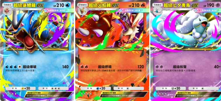 新扩充包「超级崛起超级暴鲤龙」「超级崛起超级火焰鸡」「超级崛起超级七夕青鳥」将于2025年10月30日正式推出。自这三款扩充包起,《PokémonTradingCardGamePocket》将开启全新系列篇章——超级进化的宝可梦也将首次登陆游戏。期待为大家带来更丰富多元的宝可梦卡牌收藏乐趣。
