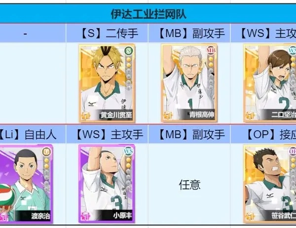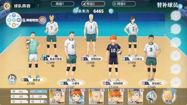 建议玩家挑选二口坚治作为主攻手,青根高伸担当副攻手,黄金川贯至出任二传手。