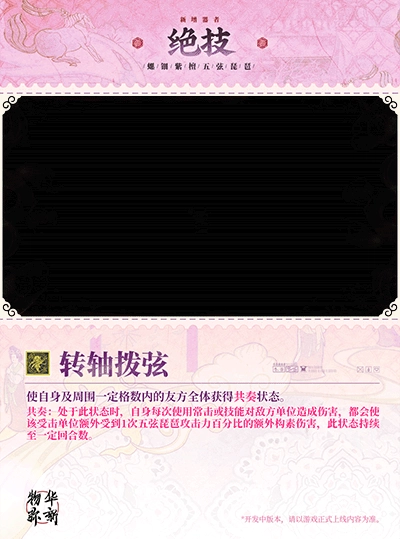 共奏:当处于该状态时,自身每次通过使用常击或技能对敌方单位造成伤害,都会让该受击单位额外承受1次基于五弦琵琶攻击力百分比的构素伤害,此状态会持续特定的回合数。
