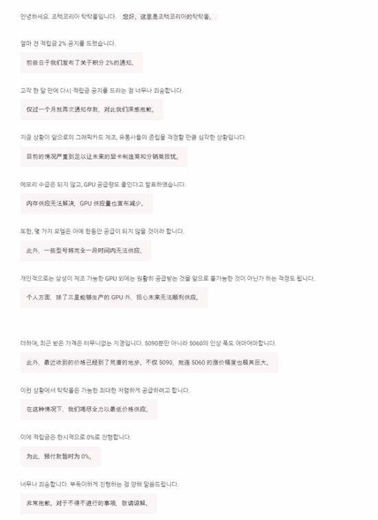 近日索泰ZOTAC韩国通过其官方TagTag Mall账号发布了一则最新通知,提醒用户显卡的供应状况正持续恶化。