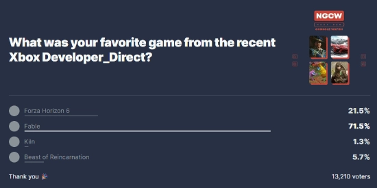 在IGN平台上,官方同步开启了一项名为“Xbox直面会上你最喜爱的游戏”的投票活动,参与投票的人数已突破1.3万。