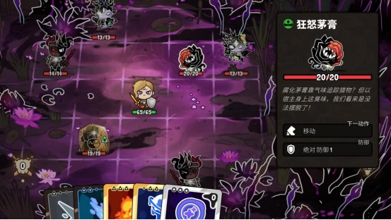 游戏的战斗场景设置在网格式地形中,你无法进行移动操作,所以巧妙运用卡牌就成了制胜的核心——每张卡牌都有着独特的攻击方向,并且敌人的位置也会不断发生变化。你需要把控好自身的攻击范围,结合多样的地形与元素属性,打造出坚不可摧的防线来抵挡敌人的进攻。在游戏进行中会面临各种各样的挑战,要慎重做出选择,书写专属于你的奇幻冒险篇章。