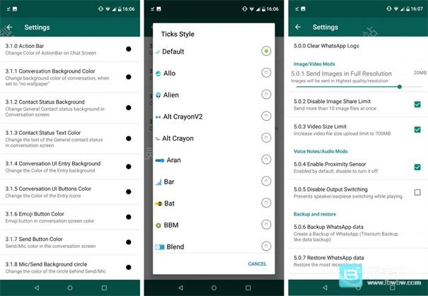 这个 MOD 是由 Yousef Al Basha 开发的,带来了诸多新的调整内容。在 YOWhatsApp 里,除了隐私、通知和文件相关的常规优化外,还有丰富的字体、颜色等额外设置……堪称一套真正全面的定制工具包。和以往一样,你得先卸载原本安装的 WhatsApp 版本。