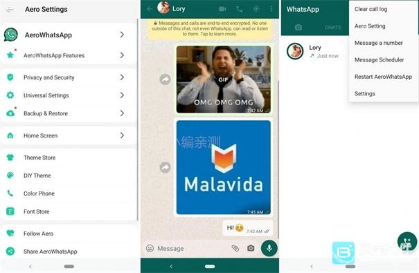 在这种情形下,我们所面对的是一款在界面视觉层面存在显著差异的MOD。WhatsApp Aero或者说AeroWhatsApp对整个聊天界面进行了重新设计,使得状态与通话窗口几乎达到了“隐形”的效果(当然,你也能够通过手指从右向左滑动的方式来访问它们)。不仅如此,其选项菜单的样式十分吸睛,和我们平时熟悉的风格大相径庭,视觉表现力更为强烈;而它的皮肤资源库,也与绝大多数同类MOD的处理方式有着明显区别。