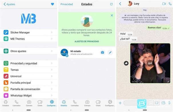 你可以配置颜色、字体、下载主题、调整通知和检查设置、隐私问题、发送更多更大的文件......GBWhatsApp 是一个运行得非常顺畅的克隆版。