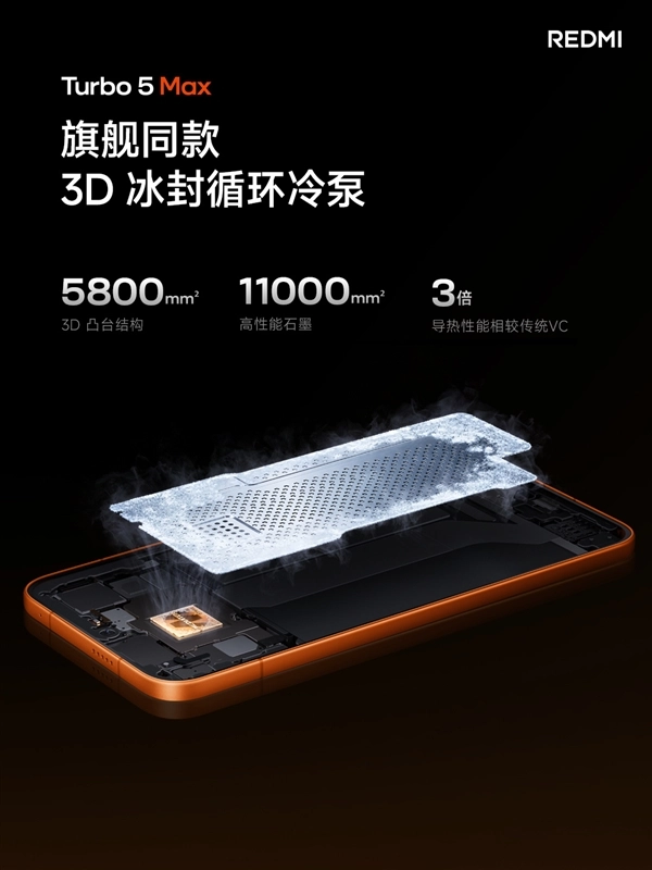 同时搭载LPDDR5X Ultra与UFS4.1高速存储组合,更升级至旗舰机型同款的3D冰封循环冷泵散热系统,再配合全新狂暴引擎调校,助力游戏性能释放更强劲。