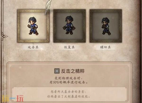 《歧路旅人0》里的反击之精粹是一种无需消耗SP的被动技能道具,其作用是在受到物理攻击时,有50%的概率进行反击。这件道具是玩家完成游戏序章后,从系统提供的三件奖励道具中三选一获得的,通关序章后在这三件奖励里挑选就能得到它。