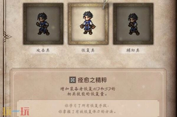 《歧路旅人0》里的痊愈之精粹属于无需消耗SP的被动技能道具,它可以增加装备者的HP与SP恢复量。这个道具是玩家完成游戏序章后,从系统提供的三件奖励道具中三选一获得的,只要通关序章,在这三件奖励里挑选就能得到它。