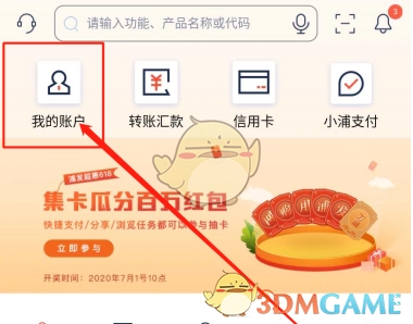 1、打开浦发APP,进入APP主页面,点击左上角“我的账户”。