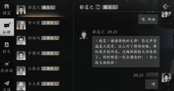 在《燕云十六声》里,和NPC结交能提升好感度并获取奖励。郗道之在酒泉镇集市,他的心上人对他不理不睬,玩家得和他对话弄清楚情况,同时告诉他对方不懂欣赏,这样就能成功结交了,具体步骤可以看下文。