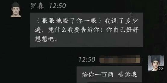 玩家:给你一百两,告诉我吧。