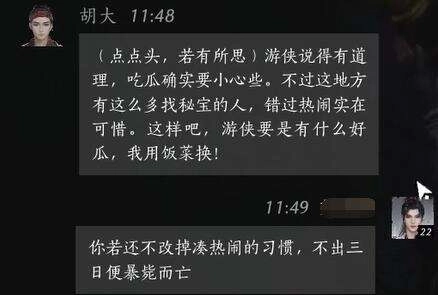 玩家:你要是还不改掉爱凑热闹的毛病,不出三天就得丢了性命。