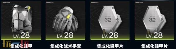 集成轻型装备组合:集成化轻甲、集成化战术手套与两片集成化轻甲片