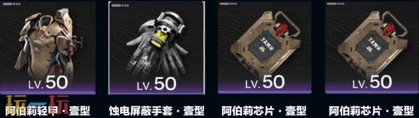 阿伯莉遗声装备组:阿伯莉轻甲·壹型+蚀电屏蔽手套·壹型+阿伯莉芯片·壹型+阿伯莉芯片·壹型