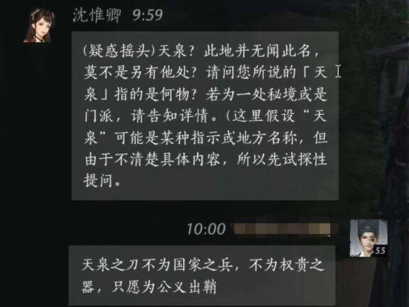 玩家:天泉之刀,既非国家之兵戈,亦非权贵之私器,唯愿为世间公义而出鞘。