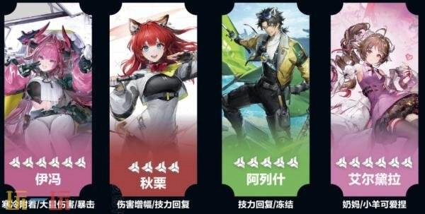 起手式:秋栗释放战技(挂灼热附着)→伊冯释放战技后接重击(触发小羊),接着释放伊籽夜创冯连携技→触发阿列什连携技,之后循环操作:伊冯有大招就开大招