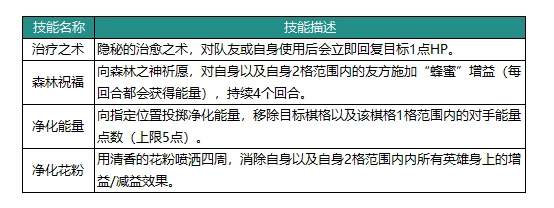 向森林之神祈祷,为自己以及自身2格范围内的友方附上“蜂蜜”增益效果(每回合均可获取能量),该增益持续4个回合。