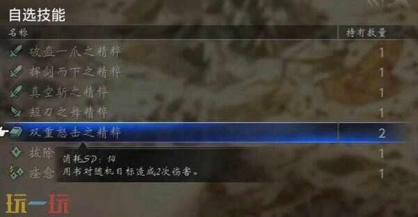 《歧路旅人0》里的双重怒击之精粹属于书系攻击道具,使用时消耗14点SP,会对随机目标发起2次攻击。它有两种获取途径:第一种是在希亚特珀利斯,对名为“勤学的强壮男性”的NPC使用【索要】指令,有概率得到该道具,不过这种方式最多只能获取2次,且成功率会随着角色等级的提升而增加,建议提前存档再尝试;第二种是在完成主线任务极名者第一章之后,去挑战希亚特珀利斯大剧场休息室副本里的Boss,战胜后打开副本内的宝箱就能必定获得它。
