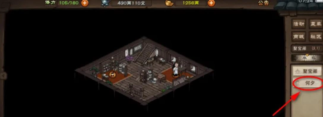 1. 进入游戏之后,点开地图,找到洛阳的聚宝阁并前往。随后选择【上楼】选项,这样便可抵达聚宝阁的二楼。