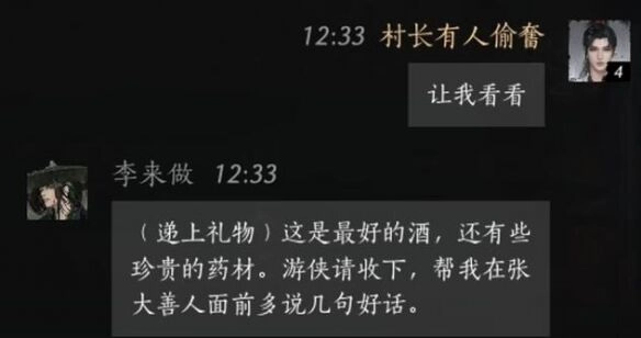 玩家:瞧你也不算机灵,拿些礼物来,我好帮你在张大善人面前多美言几句。