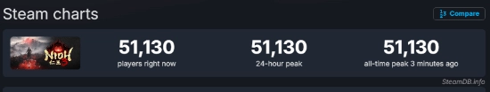 截至发稿,《仁王3》在Steam平台的同时在线峰值人数已超过5万,达到51130人,且预计在接下来的周末会迎来又一轮增长。