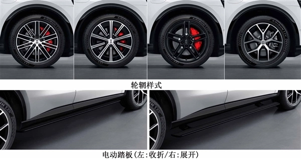 这款车配备了半隐藏式门把手,同时搭载顶置激光雷达与后向固态激光雷达的组合方案,从目前信息来看大概率是全系标配;不过M7暂时仍单独采用舱内激光视觉PRO+方案,另外,该车还支持电动侧踏板的选装。