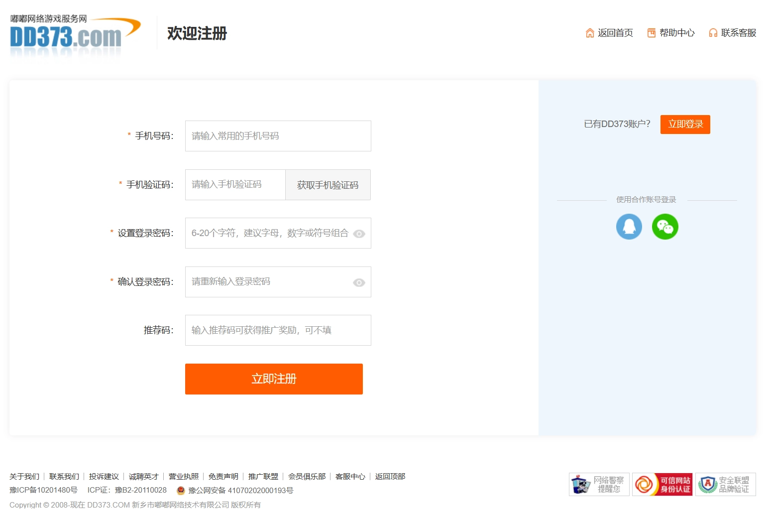 10、若您是经DD373推广员介绍完成注册的,可填写该推广员的推荐码,填写后即可领取推广员提供的新人红包。