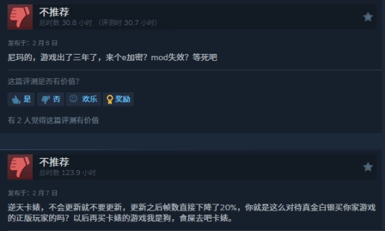 由于性能方面的问题,这款游戏近三天在Steam平台上收到了大量差评。部分玩家甚至表示,如果卡普空不取消《生化4》新增的加密措施,他们就不会购买卡普空的新作《生化危机9》。此外,还有玩家反映,目前游戏在PC端运行时占用的显存有所增加。