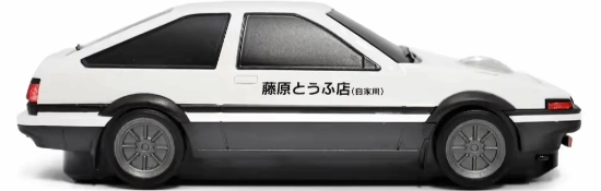 这款鼠标的设计原型,正是《头文字D》主角藤原拓海驾驶的丰田Sprinter Trueno AE86,其表面印有“藤原豆腐店(自家用)”的标识。