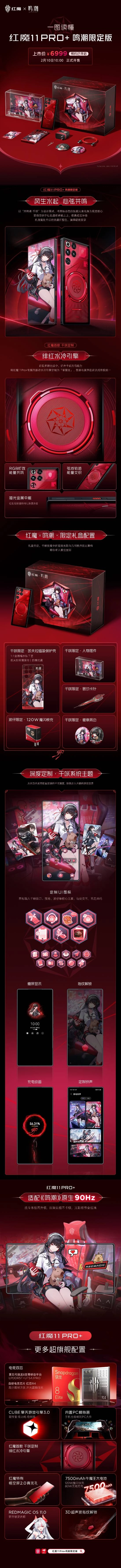 快科技2月6日消息,红魔11 Pro+鸣潮限定版今日正式发布,配备16GB+512GB存储规格,售价6999元,将于2月10日上午10点开启正式销售。