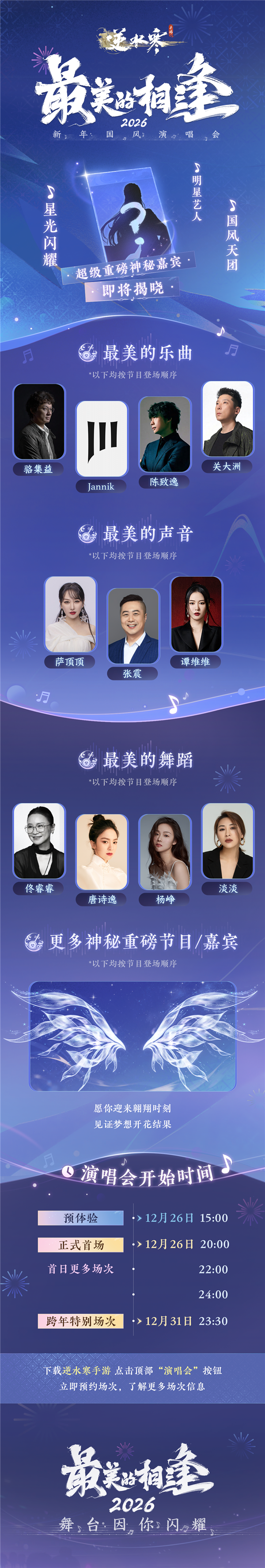 目前,《逆水寒》官方发布消息称,12月26日,《最美的相逢2026》将如期举办,开发团队会再次发放1亿张免费演唱会门票,诚挚邀请所有玩家前来参加。