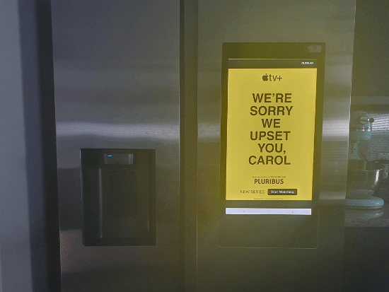 事情发生几天后,Carol的家人在网上偶然发现,那条让Carol陷入恐慌的信息,其实是Apple TV+某部剧集的宣传广告,是通过三星冰箱的Family Hub屏幕推送的。家人和Carol确认后,她证实自己看到的确实是这样的措辞。