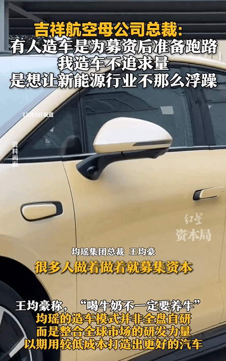 近日,在“2025中国企业竞争力年会”上,吉祥航空的母公司均瑶集团总裁王均豪针对当前部分造车新势力的动机发表了批评意见。