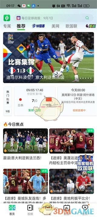 1. 第一步,打开爱奇艺体育app,进入首页后,能看到推荐的直播与焦点内容,接着点击一场【直播】打开。