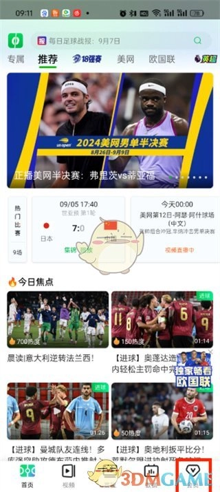 1. 第一步,打开爱奇艺体育app。进入首页后,能切换至视频、赛程、数据、会员等页面,此时点击右下角的【会员】。