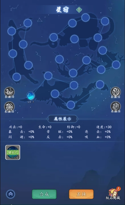 1、获取纹石的途径是购买纹石袋,将纹石镶嵌在星宿槽位上,能够提升相关属性。