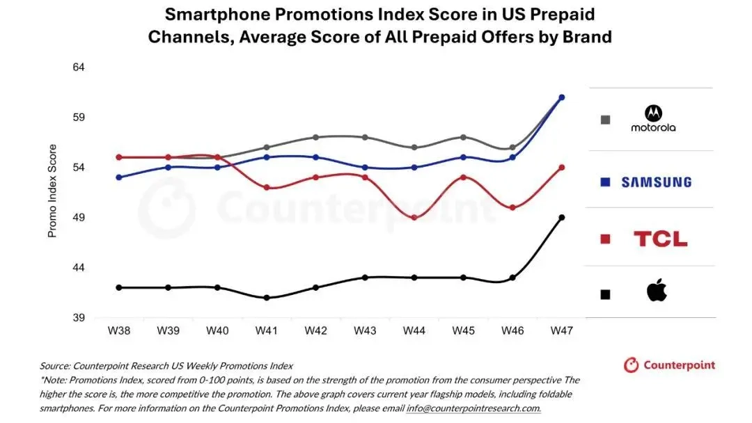 12月11日,市场研究机构Counterpoint Research发布的最新数据显示,2025年美国黑色星期五促销季的智能手机市场竞争格局呈现出动态变化。谷歌借助提前开启的促销活动,在黑五来临前的几周里于后付费市场取得领先地位,不过苹果在至关重要的黑五期间进一步加大了促销力度,最终成功实现反超。