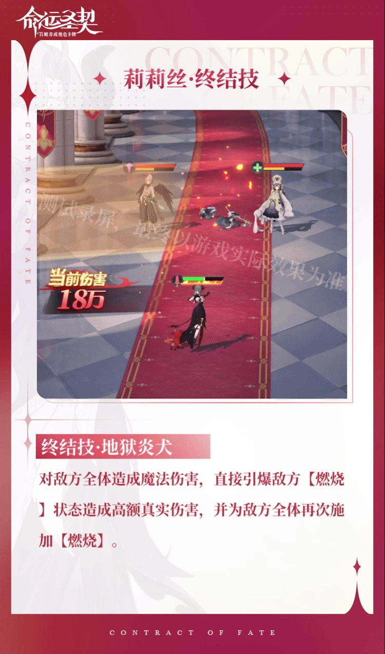 在《命运圣契》里,妖媚御姐·莉莉丝身为来自地狱的女领主,出身于上位魔族。其家族承担着在地狱灼烧有罪灵魂(施加惩罚与痛苦)的职责。下面,就由小编为大家呈上详细的《命运圣契》妖媚御姐·莉莉丝技能攻略,期望这篇文章能对大家有所帮助!