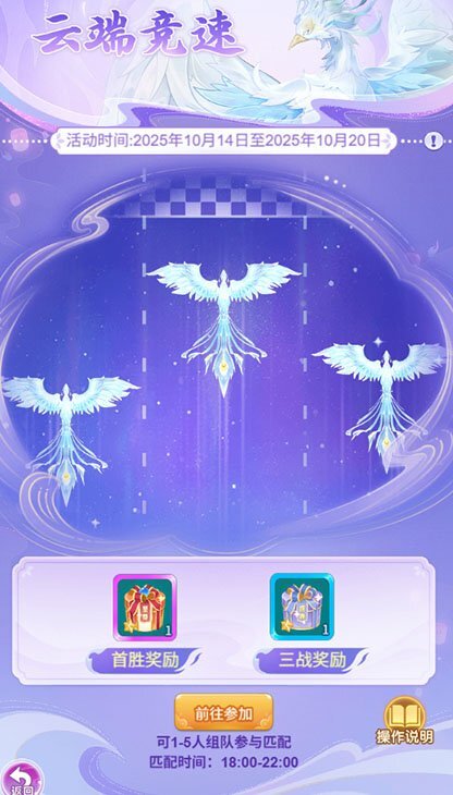 10月14日至10月20日的每日18点到22点,玩家能够以单人形式前往竞速大使所在位置参与活动。在活动玩法里,玩家可以借助精准点击加速按钮的方式来提高自身凤凰的飞行速度,力求更快速地抵达终点。