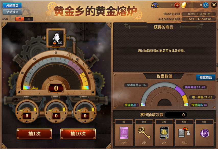 活动时间:10月23日服务器维护后~ 11月13日7点