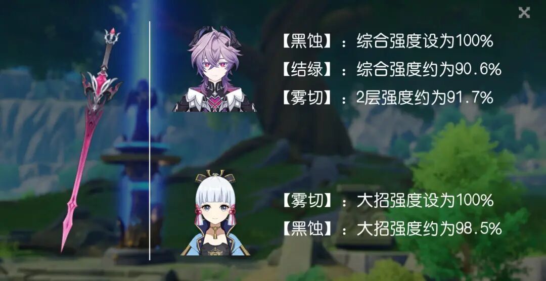 【结绿】:武器强度约为90.6%。