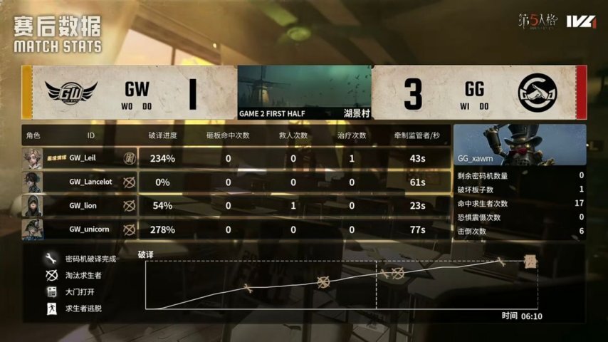 第一局比赛上半轮:GW求生者对阵成都GG监管者