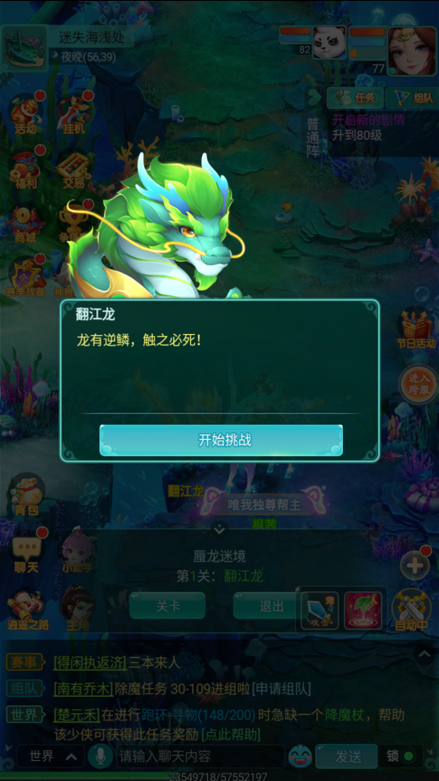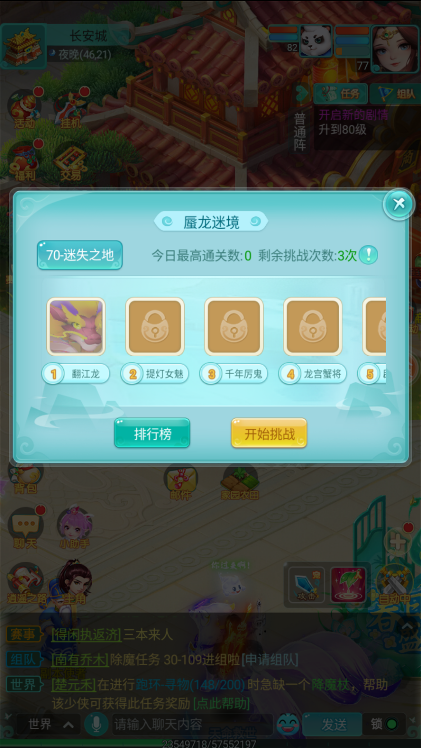 “蜃龙迷境”是常驻的单人挑战玩法,少侠可以到蜃龙使者那里开启冒险。迷境设有四大主题关卡,分别是错乱之地、迷失之地、冰雪之境和无归冥域;每个大关里面包含25个小关卡,每天第一次通关都能领取奖励。