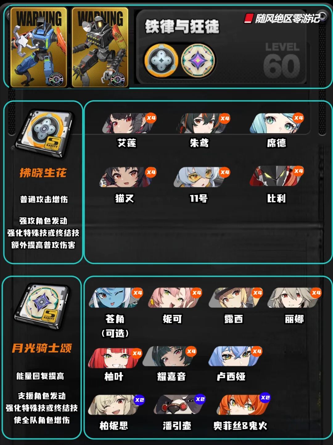 推荐度排名第二的「铁律与狂徒」,最适合卢西娅的四件套装备可在此处刷取