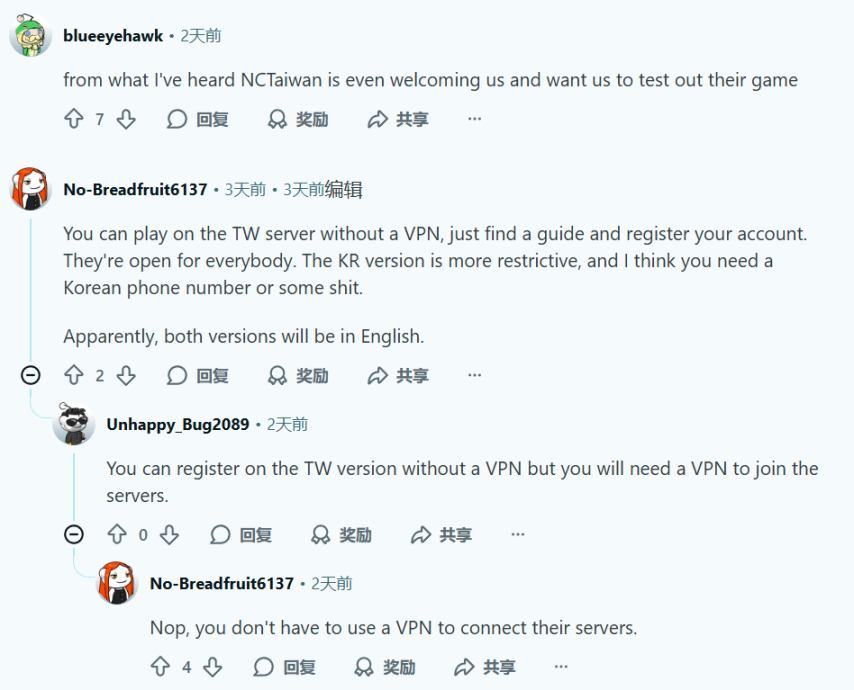 本次公开测试的首批服务器将开放韩国与中国台湾地区,尽管韩国服务器的注册需要韩国手机号和韩国IP地址,但中国台湾地区的服务器对所有人开放注册。此外,根据外网部分玩家的反馈,官方甚至欢迎其他地区玩家前往台服体验,因此不少来自日本、欧美等尚未开放本地服务器的玩家,为了能第一时间玩到游戏,都选择加入了中国台湾地区的服务器。