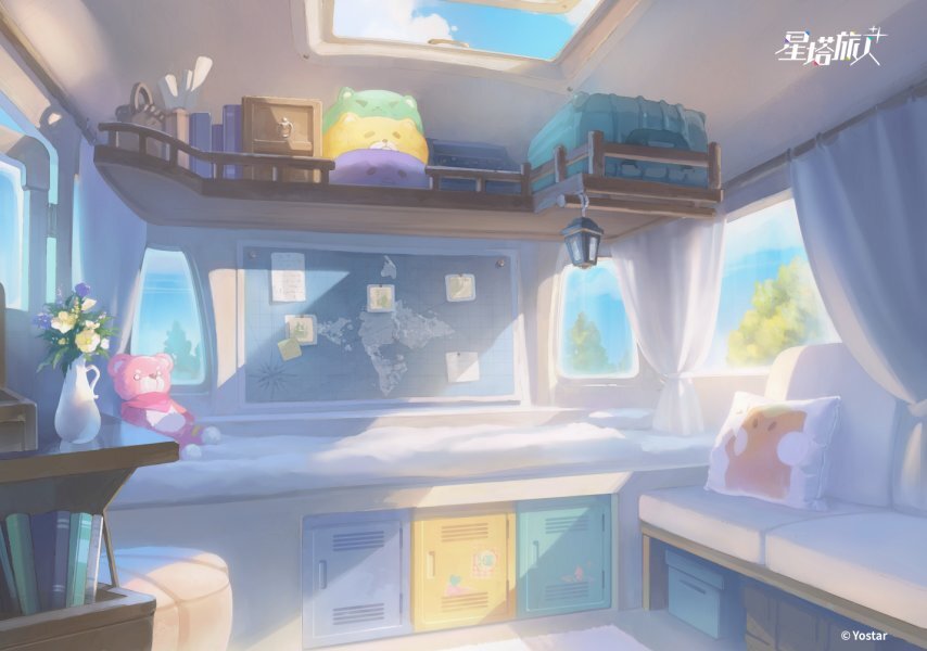 《星塔旅人》运用了辨识度极高的赛璐璐风格美术设计,以“旅行”作为核心线索,围绕旅人们的代步工具与带有“时空穿梭感”的随身物品展开了全面的视觉塑造,呈现出清新且富有活力的画面效果。与此同时,游戏在场景绘制过程中融入了水彩笔触的表现手法,既确保了画面的美感,又能使角色在场景里更加醒目。此外,场景氛围的营造还着重体现怀旧与现代的冲突感,例如魔法师的办公桌上放置着电脑、复古客厅中陈列着冰箱等,让奇幻与都市相互交织的新奇体验贯穿始终。