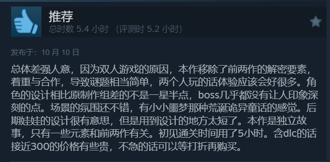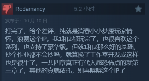 当然游戏也并非毫无可取之处,部分玩家认为游戏在场景氛围的营造上表现尚可,同时也存在一些颇具趣味的机制设计,要是定价能再亲民一些就更为理想了。
