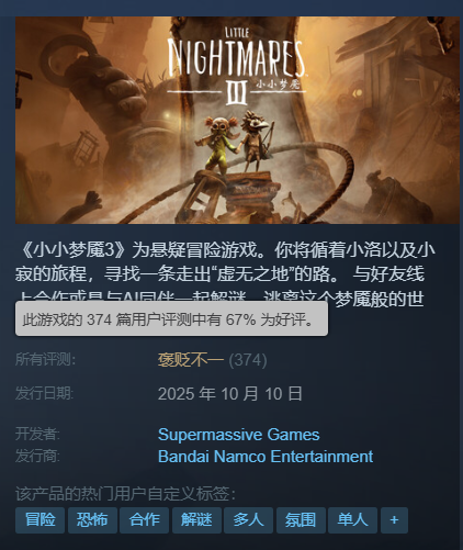 不过,打造《小小梦魇》系列的原工作室,因档期等因素并未参与《小小梦魇3》的制作,所以部分玩家也在担心新工作室能否还原前作的风格与韵味。