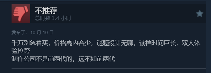 从结果来看,今天游戏上线时好评率仅为67%,不少玩家觉得游戏的关卡设计比前作逊色不少,认为新工作室和发行商万代是在消耗IP情怀。