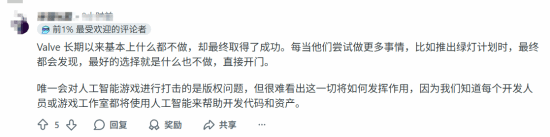 有网友称,Valve能发展到如今的规模,恰恰是因为长期以来“无为而治”,同时也提到现在的游戏公司几乎都在运用AI技术。